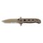 The M16-14DSFG Tanto Special Forces G10 Folding Knife is our hefty utility version, with a dual grind Tanto blade and full-size handle with butt pommel. Just like its black tactical counterpart, this knife shares a unique design offering a combination of Carson SF series features requested by military procurement specialists. It has a combined Razor-Sharp and patented Veff Serrated edge. The open build allows two Carson Flippers to be incorporated, resulting in a true hilt. The premium 8Cr14MoV stainless steel blade receives a titanium nitride coating for maximum corrosion resistance. Kit's trademark dual checkered thumb studs are standard. One-hand opening and closing is quick and smooth. The open InterFrame build uses Desert Tan scales of G10, and stainless steel liners with friction grooves. It also features our automated liner safety. All knives in this series are equipped with clip options that allow four-position carry on belts or webbing.