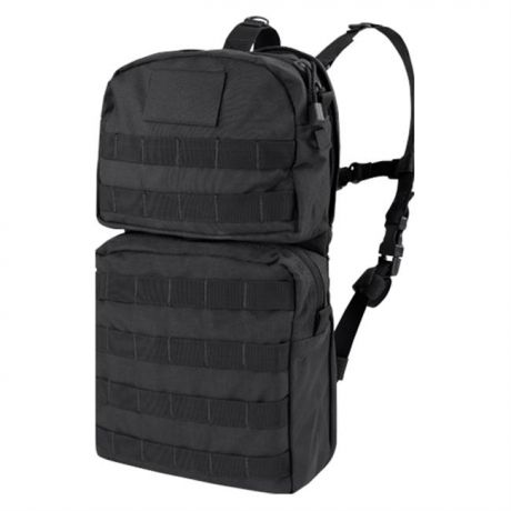 Engineered for seamless integration with armored vests and ACUs, the Condor Hydration Carrier 2 is an enhanced version of Condor's classic design with a few modern improvements. The modified heavy-duty webbing can accommodate a variety of modular attachments and clip-on accessories. It covers the front and back of the pack for maximum tactical utility. There are two large storage compartments with zippered closures for securely storing mission essentials. The detachable shoulder straps have an ergonomic design for comfortable carry, and the detachable sternum strap distributes the weight of the pack evenly across the back and shoulders. The top compartment features a loop panel for patch attachment as well. This model comes with a 2.5-liter hydration bladder.