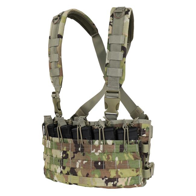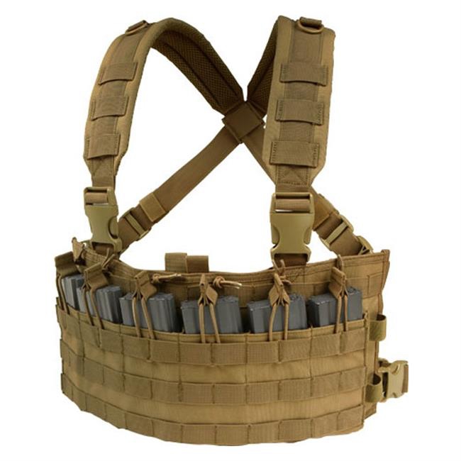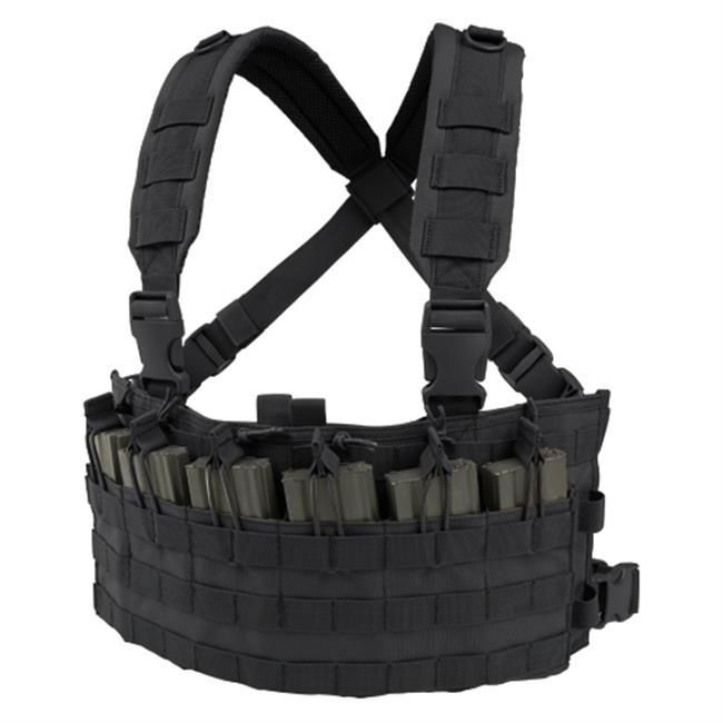 The Condor MCR6 Rapid Assault Chest Rig is an inexpensive well made product -- it securely holds six 30 round mags that have retention bands for each mag that may be removed. The padded criss/cross shoulder straps and the waist adjustment are strap are easily adjusted to fit the individual. A very good product indeed.