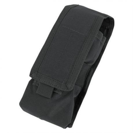 The Condor Radio Pouch is built to securely hold larger tactical radios with space for the antenna, ear bud and microphone. Two fixed straps on the back allow this pouch to easily mount onto MOLLE platforms, working perfectly for securing devices while out in the field. A snap closure as well as hook and loop fastenings keep your equipment secured.