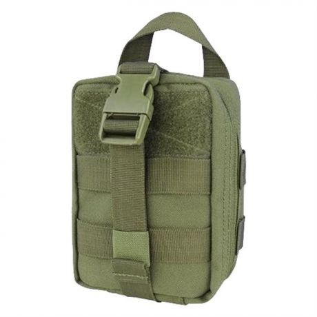 I'm using this on my battle belt as an IFAK. It's well stuffed with supplies and, as usual with Condor, it can take it. Love being able to rip it off and keep all the supplies in one place. If you're looking for a small med kit, get this one.