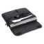 The computer sleeve is fully-padded, constructed of 100% nylon. It has an exterior document pocket, as well as an expandable zippered accessory pocket on the front. The main compartment fits computers up to 14" x 10.5" x 1.75". Shoulder strap included. Hook and loop closure.
