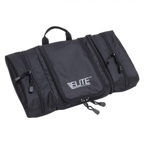 Elite Survival Systems makes packing easy with the Travel Prone Toiletry Kit. With a slim, compact design, this handy kit provides two bags in one. The right side pocket is removable, allowing you quickly to separate carry-on items. Constructed from durable 420-denier nylon with waterproof plastic-lined end pockets, cleaning is easy, even in the case of spills. Multiple interior and side pockets and mesh slots keep your toiletries organized, and YKK zippers and heavy-duty hardware add security. Built with a sturdy hook, this kit conveniently hangs down, freeing up extra counter space. Weighing just two pounds when empty, this case is a perfect addition to your suitcase.