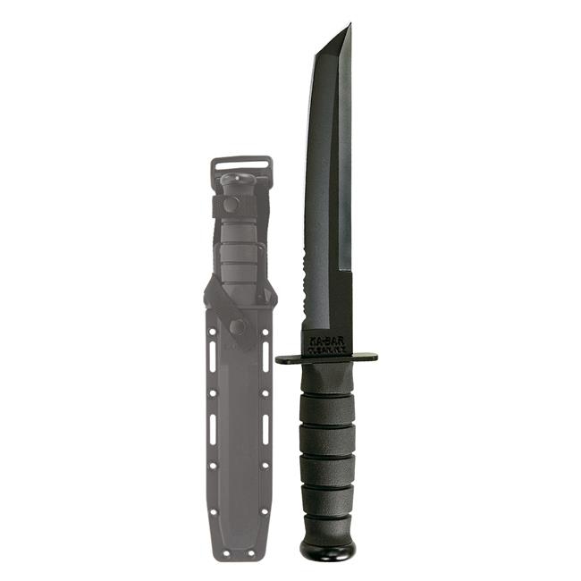 Ferociously sharp and extremely rugged. The Ka-Bar Tanto is designed for survival and utility, with a thick pointed Tanto blade shape that is excellent for penetration. The Kraton handle offers a comfortable grip and the full tang improves durability. The Tanto is made in the USA and sold with a glass-filled nylon sheath. The 1095 Cro-Van Steel sharpens well and is designed to take on the most brutal tasks.