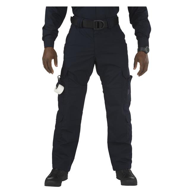 I love these pants. I’m a factory mechanic and work on machinery all day but I still get tons of use out of these pants. The tape holder works with pretty much any type of 1” thick tape, so electrical tape hangs their quite well for me, the extra pockets work for all types of working items anything from small tools to screws and the like, the built in “phone” pocket in the back left pocket is really nice so I don’t have to wear my phone on my hip in the way. The down side of these pants however small is they only seem to come in black or dark blue so that’s kind of a bummer and I’m not sure you could actually use them if you were an EMT as I’m sure in my state all the EMS workers clothing including pants are required to have a 1-1/2” reflective stripe running all the way down their sides. All in all I rather enjoy the pants as a whole.