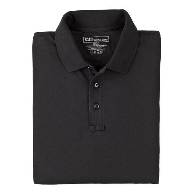 For casual on- or off-duty wear, the 5.11 Tactical Polo is sewn with law enforcement officers, security personnel and other tactical professionals in mind. This polo is designed to deliver a neat, professional look and high-performance functionality. It features mic-loop pockets on each shoulder and at the bottom of the placket, reinforced dual pen pockets and resilient melamine buttons. The No Roll Collar with collar stays provide a neat, clean appearance all day long. Made from 6 oz. 100% cotton jersey fabric, these shirts accept most embroidery and silk screening methods for total customization with your unit or department.