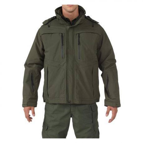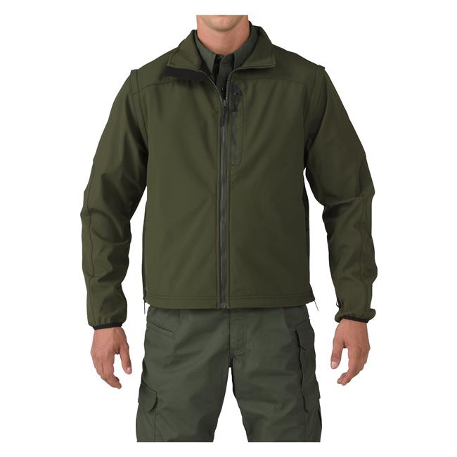 Designed with the patented 5.11 Quixip System for rapid, efficient sidearm access, the 5.11 Valiant Duty Jacket is an impressive overall tactical package. Removable, zippered sleeves make it fully adaptable as a jacket or vest and the three-piece hood has a built-in visor and integrated draw cord to protect against rain and wind. Bartacking at all major stress points ensures durability and allows for a wide range of motion during physical activity. Hidden document pockets, removable ID panels, a badge tab and mic loops add to the jacket's tactical appeal. Not only is it customizable for different situations, it is also Back-up Belt System compatible.