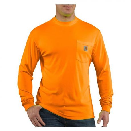 Stay visible with the Carhartt Force Hi-Vis Color Enhanced T-Shirt. The lightweight and breathable 4.25 oz. knit polyester keeps you cool while the FastDry technology wicks away moisture and sweat so you can stay focused on your day. Stain Breaker technology releases stains so you look good wash after wash, and features like side-seamed construction to minimize twisting and a tagless neck label allow you to work without worrying about being uncomfortable. The chest pocket adds practicality and allows you to keep essential items close. A long sleeve style adds extra arm protection while still remaining cool even in warmer weather.