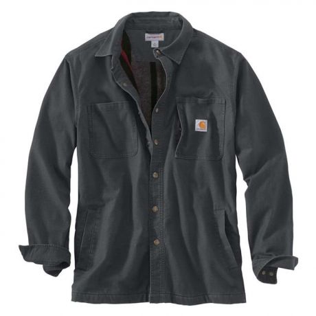 Fleece-lined and built with stretch for ease of movement, this Carhartt Rugged Flex Rigby Shirt Jac is ready for every workday. The printed fleece lining keeps you warm without adding bulk. Two large pockets in the front, along with a zippered chest pocket, keep items secured and close at hand. A relaxed fit creates a closer fit to the body that’s built for work, and Rugged Flex technology ensures that you will be able to move easily and efficiently. Adjustable cuffs ensure a great fit. Stay warm in the Carhartt Rugged Flex Rigby Shirt Jac.