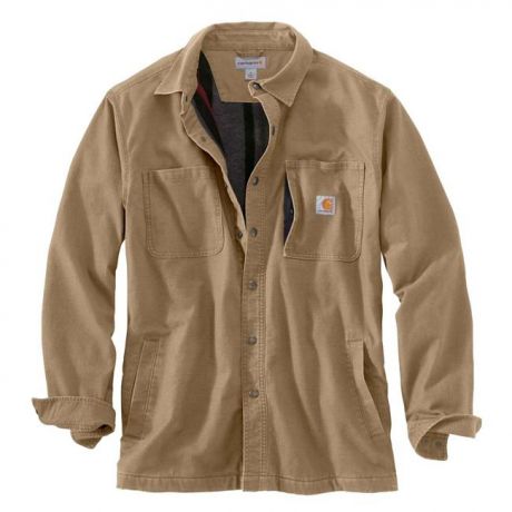 Fleece-lined and built with stretch for ease of movement, this Carhartt Rugged Flex Rigby Shirt Jac is ready for every workday. The printed fleece lining keeps you warm without adding bulk. Two large pockets in the front, along with a zippered chest pocket, keep items secured and close at hand. A relaxed fit creates a closer fit to the body that’s built for work, and Rugged Flex technology ensures that you will be able to move easily and efficiently. Adjustable cuffs ensure a great fit. Stay warm in the Carhartt Rugged Flex Rigby Shirt Jac.
