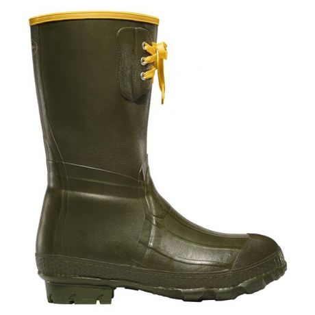 The Insulated Pac rubber hunting boots are great for chilly conditions. A wool-felt midsole and foam insulated bottom keep warmth from escaping and cold from entering. The boots are made of a premium rubber compound that’s ozone resistant and offers 100% waterproof protection. A chevron-cleated outsole won’t track mud and dirt. A removable EVA footbed adds cushioning, and a three-eye lace top provides a snug fit for added warmth. Designed with LaCrosse Ankle-Fit design to reduce slippage for better walking comfort, the insulated Pac is still easy to pull on and off.