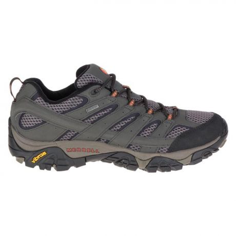 The Merrell Moab 2 GTX combines durable synthetic leather with a GORE-TEX waterproof membrane to keep your boots dry, inside and out. A breathable mesh lining lets you stay comfortable even in warmer weather, and the bellows tongue offers a snug fit to block out debris and moisture. A protective rubber cap guards your toes from injury, while a molded nylon arch shank enhances stability. An M Select FIT.ECO+ blended EVA contoured foot provides arch and heel support where you need it most. A specially designed air cushion in the heel absorbs shock with each foot strike, reducing fatigue. For essential traction and stability, the Vibram TC5+ outsole features five-millimeter deep lugs that anchor your feet on any terrain.