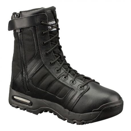 Perfect for long shifts in urban environments, the Original SWAT Air Metro Traction SZ provides cushioned comfort and maximum support. This boot is built on a non-marking rubber outsole that meets the ASTM F489-96 standard for slip resistance to keep you functional on any terrain. With arch ladder tread and a custom-molded thermoplastic heel counter, these boots deliver superior traction and support with very little break-in time. The non-metallic shank allows these boots to be comfortably worn at the airport or near security devices. A YKK side zipper with a hook and loop closure allows for a secure fit and fast on and off. Made from a blend of leather and 3-ply bonded nylon, these boots are built to hold up on any mission.
