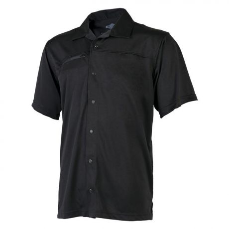The 24-7 Series Eco Tec Knit Camp Shirt contains REPREVE polyester, one of the most certified, earth-friendly fibers available in the world, made from 100% recycled materials including water bottles. Products made with REPREVE help conserve energy and natural resources, giving customers another great reason to recycle. The Eco Tec Knit Camp shirt provides soft, 4-way stretch contort and moisture wicking, anti-microbial technology. The button top snap placket allows quick access to a holster and makes it perfect for the TRU professional.