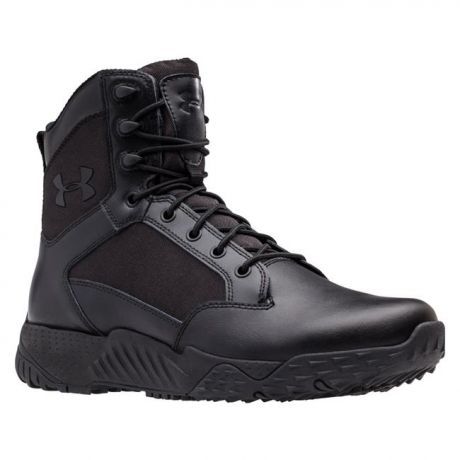 Achieve peak performance with the Under Armour Stellar Tac boots. Made with a reinforced Thermoplastic polyurethane shank and UA STORM technology, these boots offer superior foot protection and support in any environment. The upper is made with water-resistant leather and 900 denier nylon for durability and long-lasting wear. For additional protection to keep your feet dry and fresh throughout your shift, these shoes feature a durable water-resistant treatment, an anti-microbial OrthoLite sockliner and Under Armour's water-resistant performance fabric. Built with a polishable soft toe, a molded EVA midsole and a low profile rubber lug outsole, these boots get the job done day in and day out.
