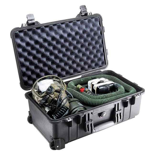 For the world adventurer, the Pelican 1510 Carry-On Case will keep your equipment safe as you travel to the tallest mountains, most windswept deserts and raging rivers. This watertight, dustproof and crushproof case meets the Federal Aviation Administration’s maximum carry on size. With a retractable extension handle and two wheels, you can roll the case, which makes transporting your heaviest gear or walking over long distances much easier. The strong, polyurethane wheels with stainless steel bearings deliver a smooth ride, while padlock protectors help keep your belongings safe. An automatic pressure equalization valve with an O-ring seal maintains the balance of the interior pressure, while preventing moisture from entering. The case uses easy open double throw latches and includes comfortable rubber-over molded top and side handles for your convenience.