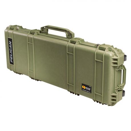 Built to keep your most valuable possessions secure, the Pelican 1720 Long Case is ideal for firearms or industrial equipment. Intense testing and durable construction methods deliver the best protective case on the market. For convenient, smooth transportation, the strong polyurethane wheels are designed with stainless steel ball bearings and a nylon hub. This wheel set-up resists heat for less damage to the tire to give you a long-lasting product. Thanks to an open cell core with a solid wall design, this case is stronger and more lightweight than solid core cases. The automatic pressure equalization valve balances the interior pressure, so even with massive altitude changes, the case is always easy to open with double throw latches. The valve along with an O-ring seal provides a watertight and dustproof container. For impact-resistant cushioning, a three-piece foam set snugly holds your gear.