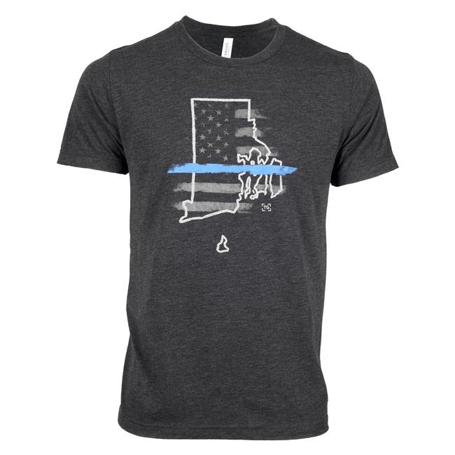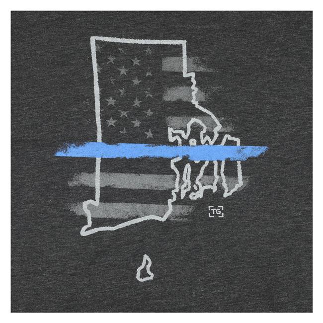 Support Rhode Island law enforcement with this soft, comfortable performance tee. The graphic displays a distressed American flag with a single blue stripe, representing the relationship of law enforcement as the protectors of civilians, and as the line between order and chaos. The flag is layered over an outline of Rhode Island—an exclusive design created by TG to show support for local officers. More than just a great tee, the TG Thin Blue Line T-Shirt shows respect to the men and women who keep our streets safe.