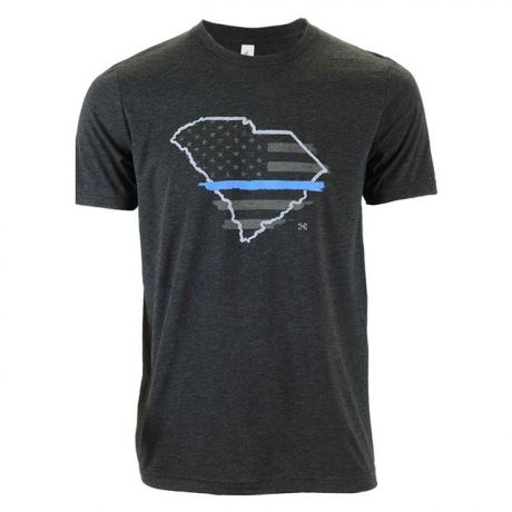 Support South Carolina law enforcement with this soft, comfortable performance tee. The graphic displays a distressed American flag with a single blue stripe, representing the relationship of law enforcement as the protectors of civilians, and as the line between order and chaos. The flag is layered over an outline of South Carolina—an exclusive design created by TG to show support for local officers. More than just a great tee, the TG Thin Blue Line T-Shirt shows respect to the men and women who keep our streets safe.