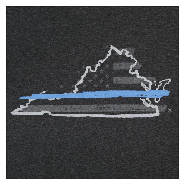 Support Virginia law enforcement with this soft, comfortable performance tee. The graphic displays a distressed American flag with a single blue stripe, representing the relationship of law enforcement as the protectors of civilians, and as the line between order and chaos. The flag is layered over an outline of Virginia—an exclusive design created by TG to show support for local officers. More than just a great tee, the TG Thin Blue Line T-Shirt shows respect to the men and women who keep our streets safe.