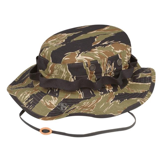 The boonie hat was introduced to the United States Armed Forces during the Vietnam War, when U.S. Army Green Berets began wearing them in the field, along with Australian and Army of the Republic of Vietnam units. These hats were locally procured; the camo cloth was usually salvaged from other uniform items or with the former from a parachute or made up by the tailor. The name is derived from "boonie", the abbreviated form of boondocks (itself originally American military slang derived from Tagalog bundok, "mountain", during the Philippine-American War. Made to current U.S. military specs.