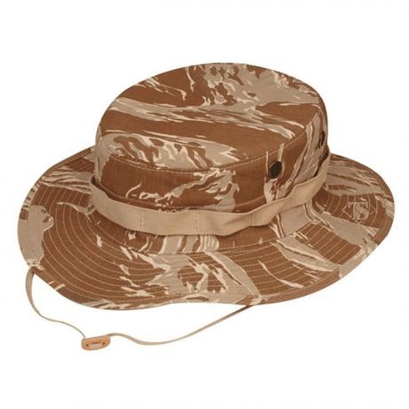 The boonie hat was introduced to the United States Armed Forces during the Vietnam War, when U.S. Army Green Berets began wearing them in the field, along with Australian and Army of the Republic of Vietnam units. These hats were locally procured; the camo cloth was usually salvaged from other uniform items or with the former from a parachute or made up by the tailor. The name is derived from "boonie", the abbreviated form of boondocks (itself originally American military slang derived from Tagalog bundok, "mountain", during the Philippine-American War. Made to current U.S. military specs.